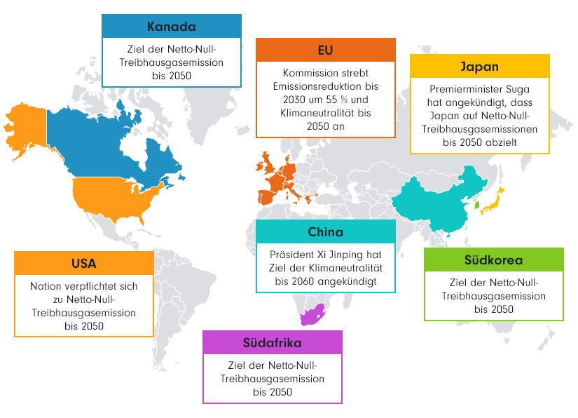 Weltweite Klimaschutzziele ausgewählter Länder und Regionen