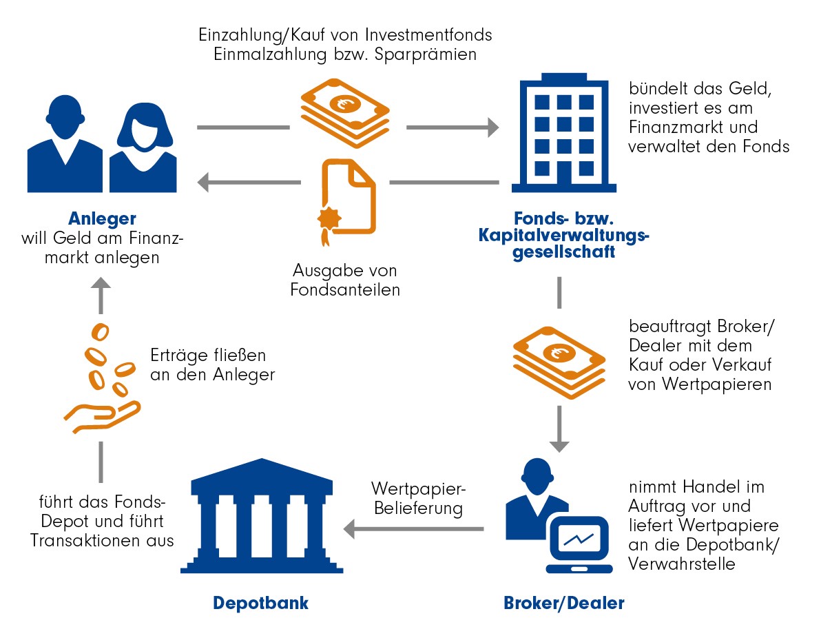Funktionsweise von Investmentfonds: ein professionelles System (Grafik als Download verfügbar)