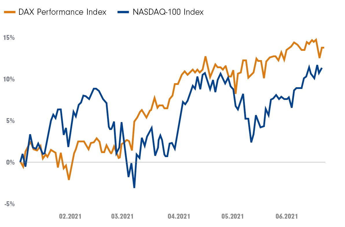Quelle: Refinitiv Datastream, Zeitraum 01.01.2021 bis 22.06.2021, rebasiert zum 01.01.2021