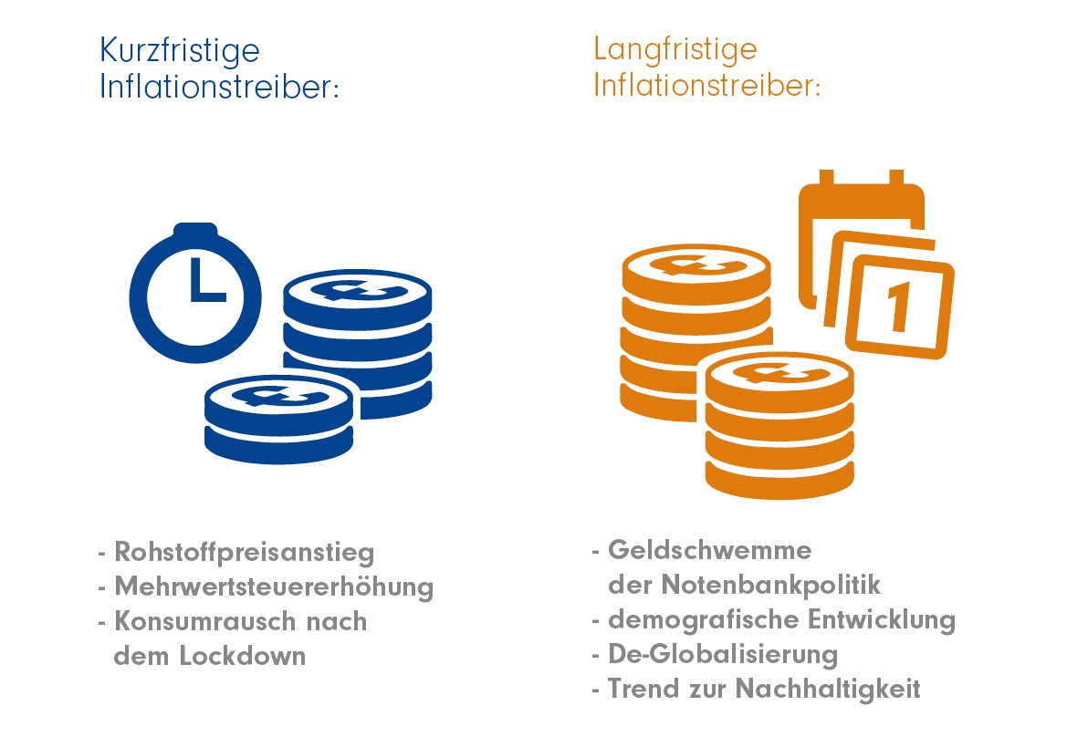 Der Mehrwertsteuerschritt in Deutschland: Auch die teilweise Rückkehr zu den alten Mehrwertsteuersätzen nach der temporären Senkung wirkt preissteigernd. Dazu kam die Einführung einer CO2-Abgabe in Deutschland Anfang 2021.