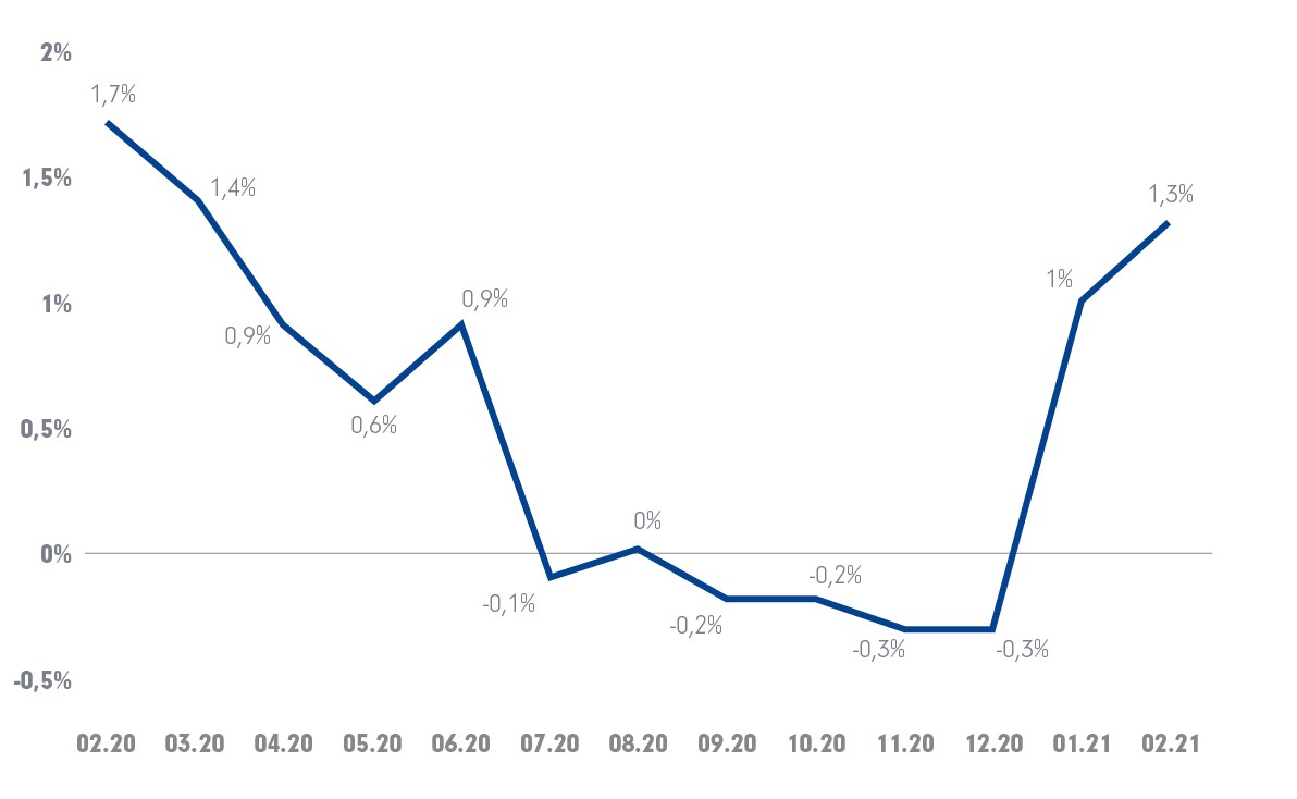 Was die kurze Sicht angeht, herrscht mehr oder weniger Einigkeit: Die Inflation dürfte im Jahresverlauf spürbar ansteigen. Das liegt zunächst hauptsächlich an Sondereffekten, die sich im Vergleich zum Vorjahresmonat (damals unter dem Eindruck der ersten Corona-Phase) bemerkbar machen: