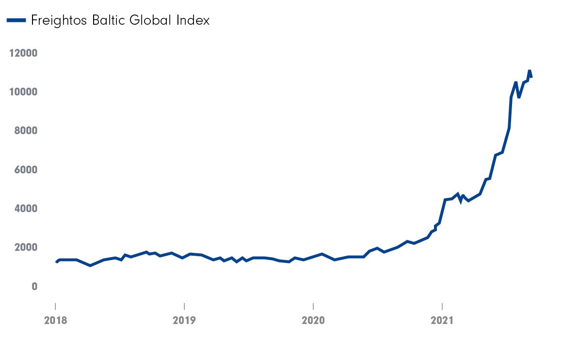 Viele Inflationstreiber sind zunächst einmal tatsächlich der Corona-Pandemie und dem nachfolgenden Wirtschaftseinbruch geschuldet. Beispiel: Geringere Investitionen in die Gewinnung von Rohstoffen führen nun bei Erholung der Wirtschaftsleistung zu Knappheit und höheren Preisen. Unordnung in der globalen Containerschifffahrt und stark eingeschränkte Frachtkapazitäten im Luftverkehr – da es deutlich weniger Linienflüge gibt – lassen die Frachtkosten in die Höhe schnellen. Und: Ein Vorjahresvergleich bei den Inflationsraten blickt in der gegenwärtigen Situation natürlich auf ein Pandemie-Niveau von Preisen zurück und verzerrt das Bild.